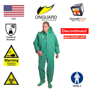 ONGUARD 71022 Chemtex Level C Chemical Resistance PVC Coverall Green w/Hood Size M – 4XL