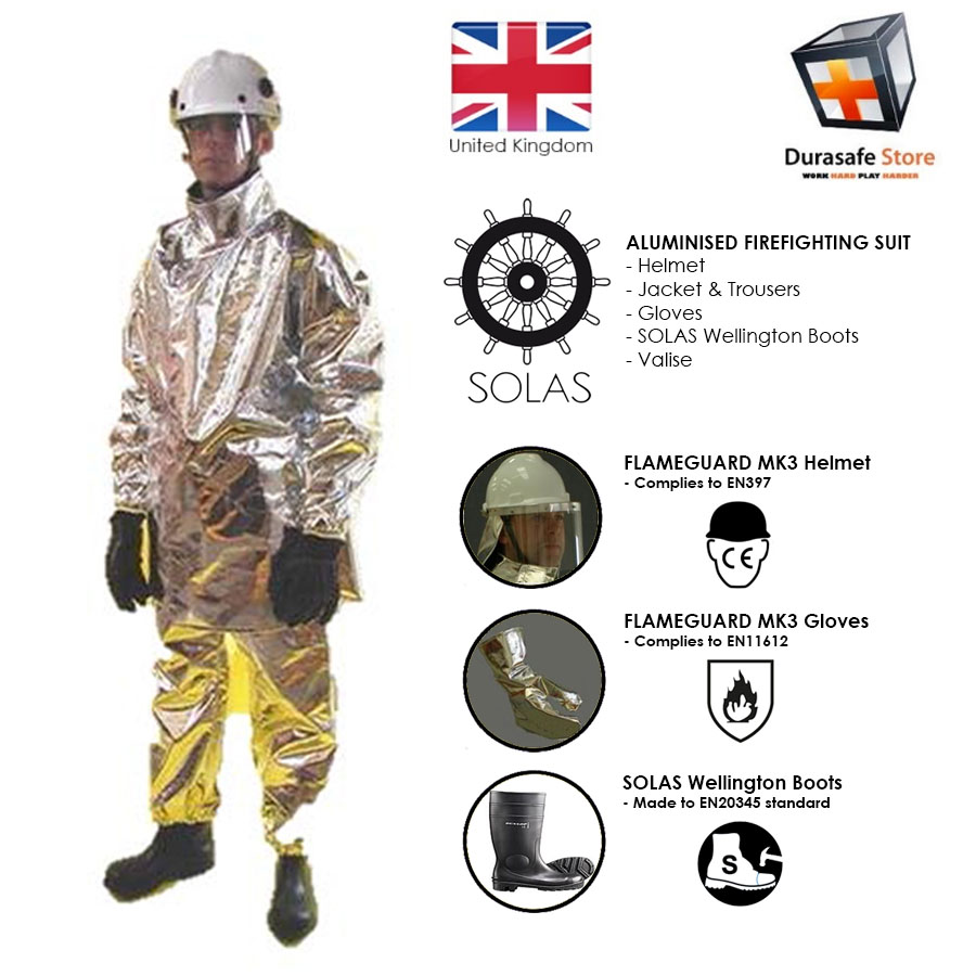 • Two piece suit fabricated in aluminised fire resistant natural cotton