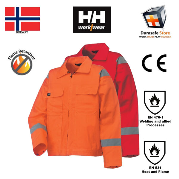 Helly Hansen 76083 Oban 100% Cotton Flame Retardant Jacket Red, Orange