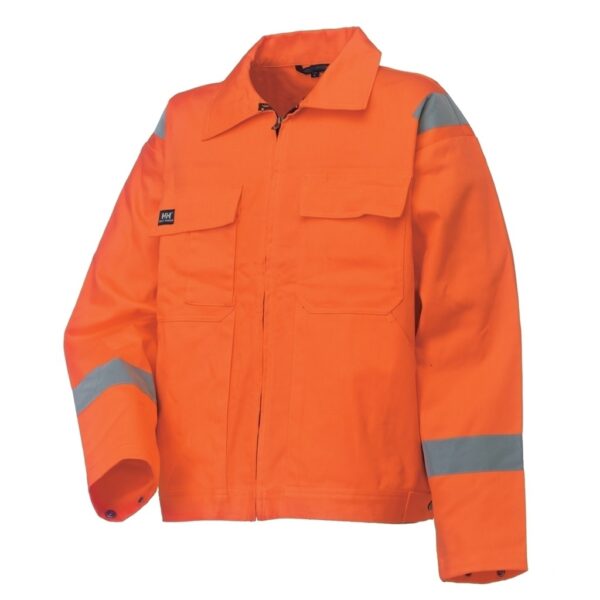 The Helly Hansen Oban Jacket is the perfect workwear option for those who need a flame retardant garment regularly in the workplace. The flame retardant coverall jacket cotton is comfortable to wear and comes with reflective stripes. The HH Oban Jacket is commonly used in the oil and offshore industry due to the protection it offers for use in welding and allied processes.