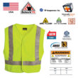 This Flame Retardant rain jacket from Bulwark offers 360° of high visibility with its bright yellow/green color and 2″ reflective tape. It has non-conductive hardware for durability and a tuck away, roll up hood for those especially bad weather days. It is comfortable to wear with its adjustable cuffs that can be taken up and has a vented back with “D” ring access.